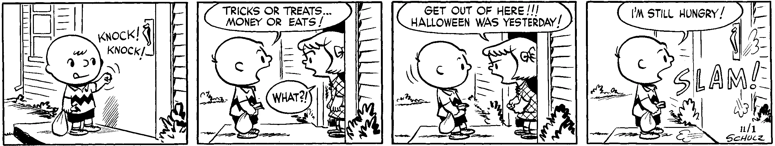 Treats! Treats for the taking! For those bold or cunning enough to pry them loose from the hands of their bearers, the spoils are endless. There is no sound like that made when rummaging through a full bag of pilfered, miscellaneous candy. It sounds like electric rain.