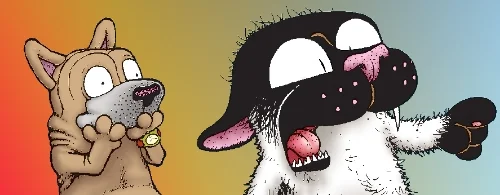 Concept: A dog and a cat do some stuff with this guy they know.